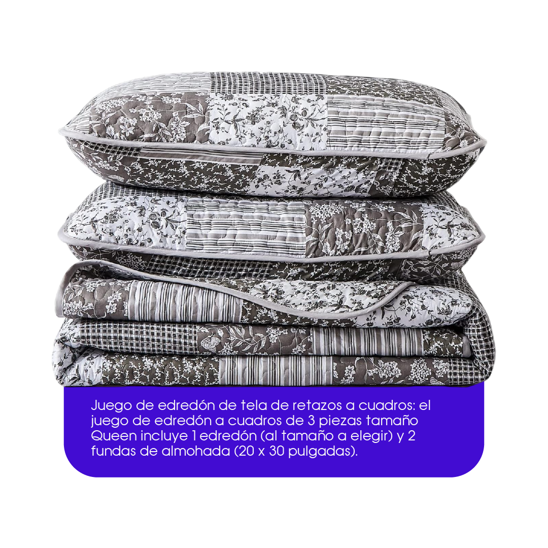 Material suave de microfibra: el juego de edredón floral de retazos está confeccionado con material de microfibra suave, lo que ofrece comodidad y confort, siendo ideal para usar durante todo el año. Este edredón es reversible y se puede utilizar por ambos lados.